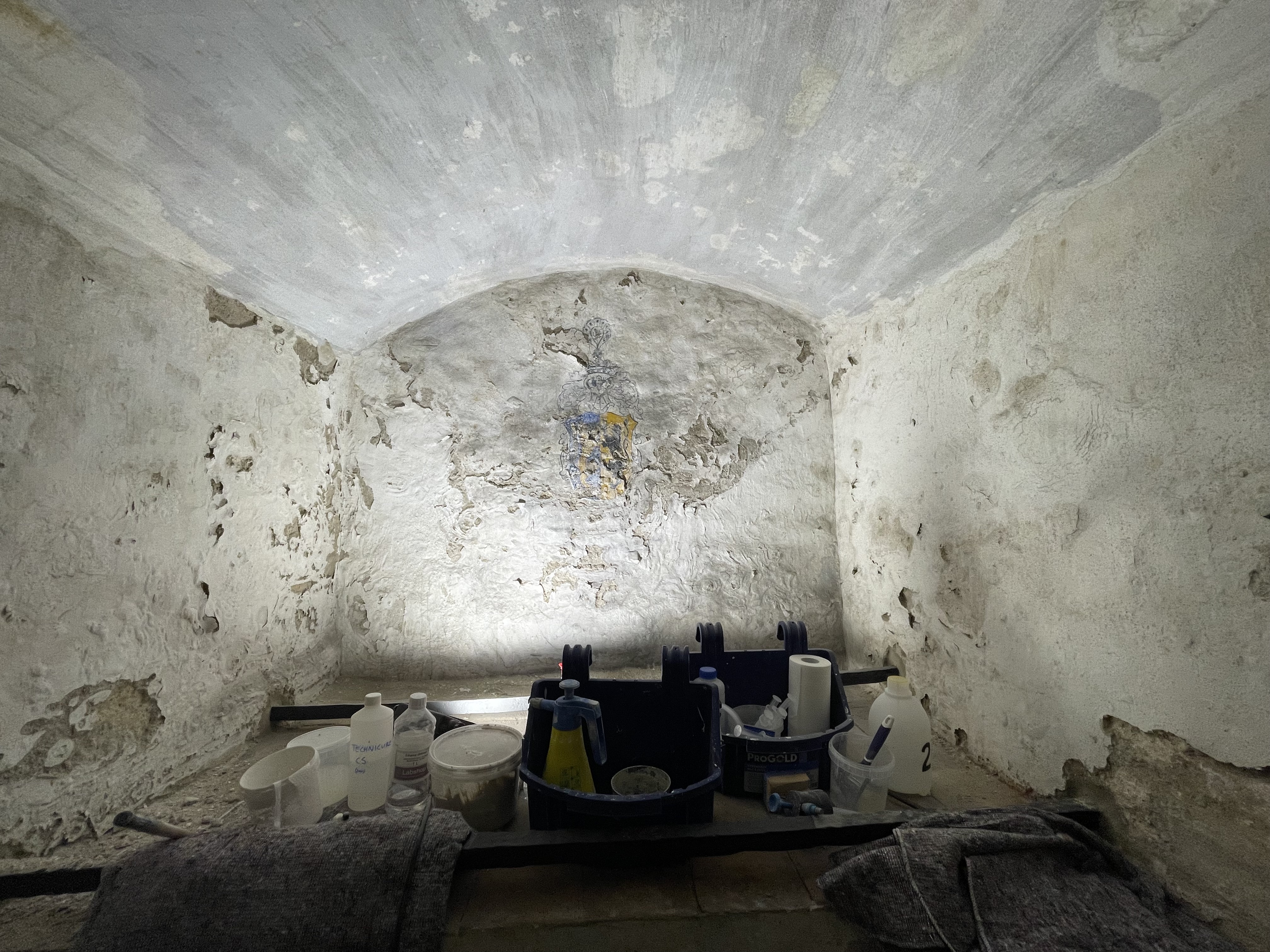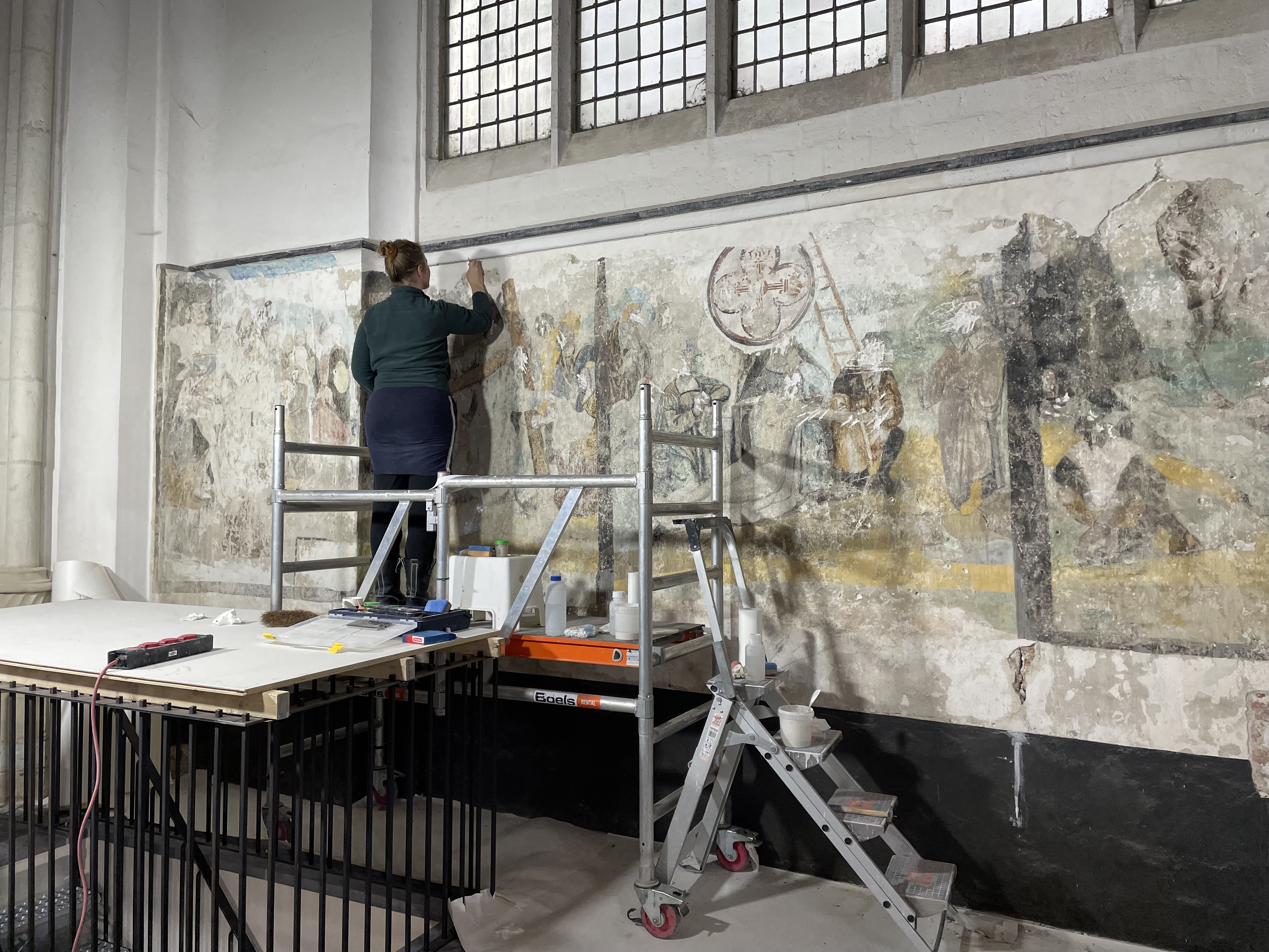 Conservatie van Passie en Paascyclus aan de oostwand van de kooromgang en het pleisterwerk met twee kruizen + wapenschild in de Grafkelder van Karel van Egmond, Hertog van Gelre. Ook hebben wij meegewerkt aan de digitale reconstructie van de muurschildering Passie en Paascyclus, deze is opgenomen in de expositie 'Experience glorie van Gelre' in de Eusebiuskerk.