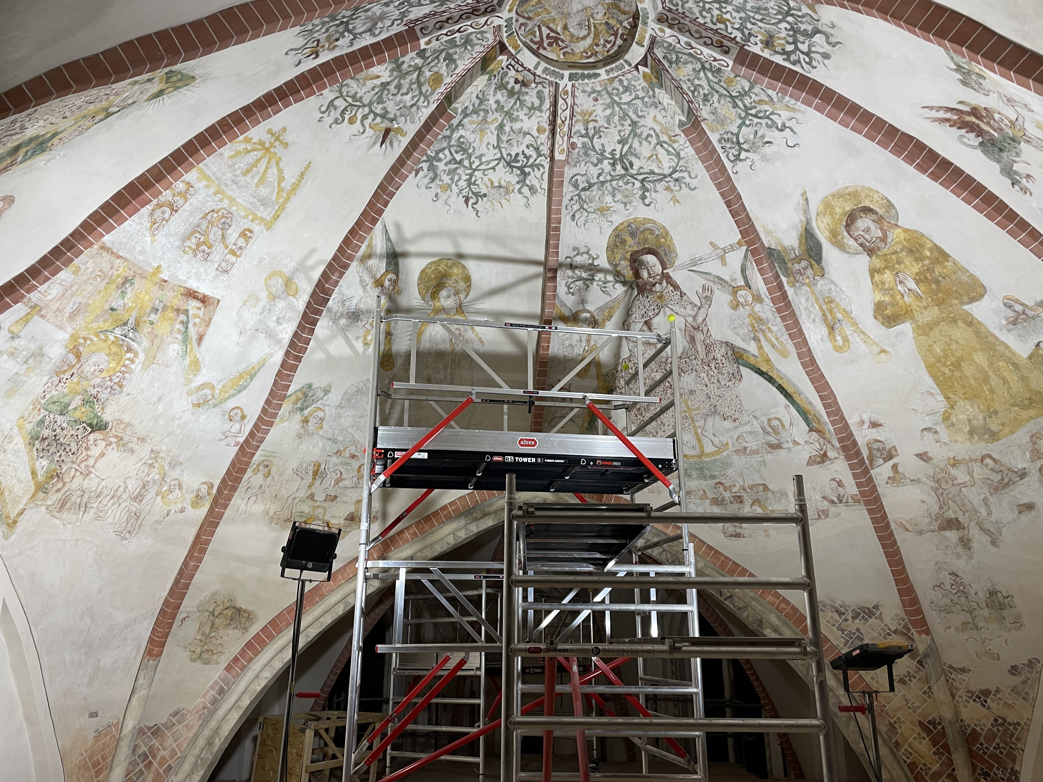 Van augustus 2024 t/m juli 2025 is er gewerkt aan de conservatie en bevingschadeherstel van de gewelf- en muurschilderingen in de kerk van Noordbroek.